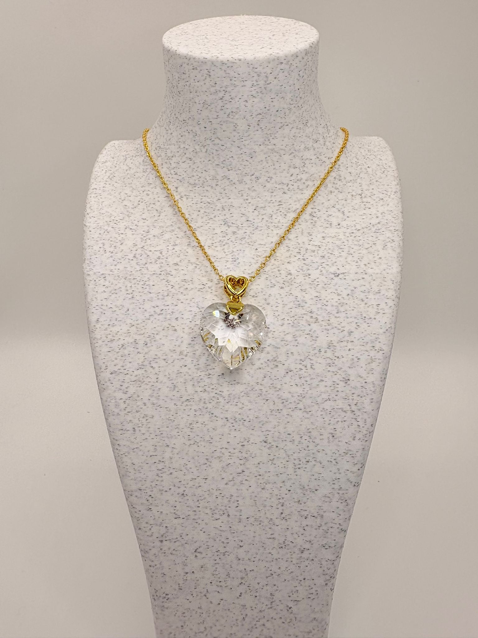 Su protagonista es un cristal austriaco premium transparente, que captura la luz con un destello sutil y sofisticado. Cuenta con una longitud ajustable de 40 a 45 cm, adaptándose cómodamente al cuello, y un cierre seguro y práctico que garantiza confort durante todo el día.